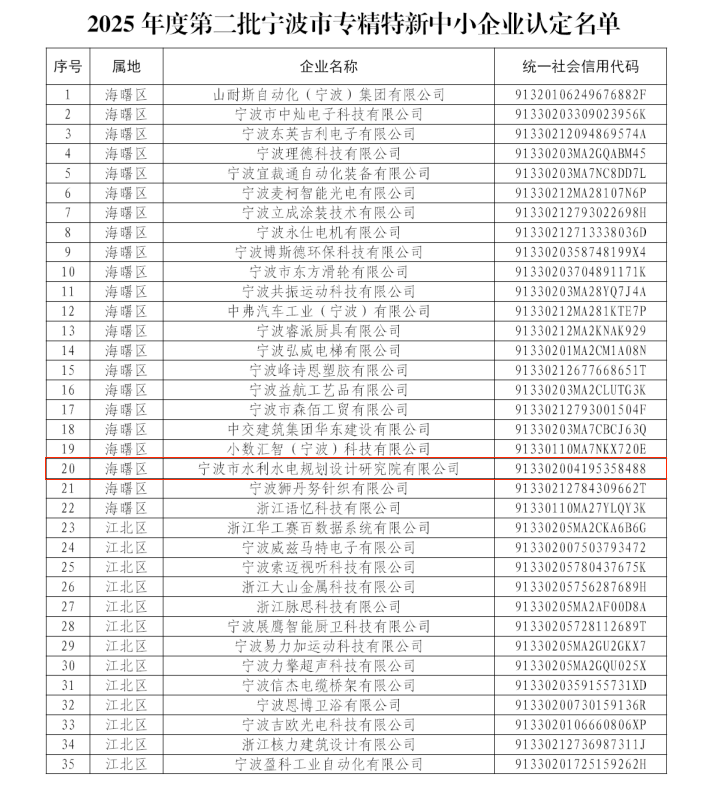近日,寧波市經(jīng)濟(jì)和信息化局正式公布《2025年度復(fù)核通過及新認(rèn)定第二批寧波市專精特新中小企業(yè)名單的通知》(甬經(jīng)信中小〔2026〕30號),我院憑借多年深耕專業(yè)技術(shù)、堅(jiān)持創(chuàng)新驅(qū)動(dòng)所取得的豐碩成果,成功入選2025年度第二批寧波市專精特新中小企業(yè)認(rèn)定名單!