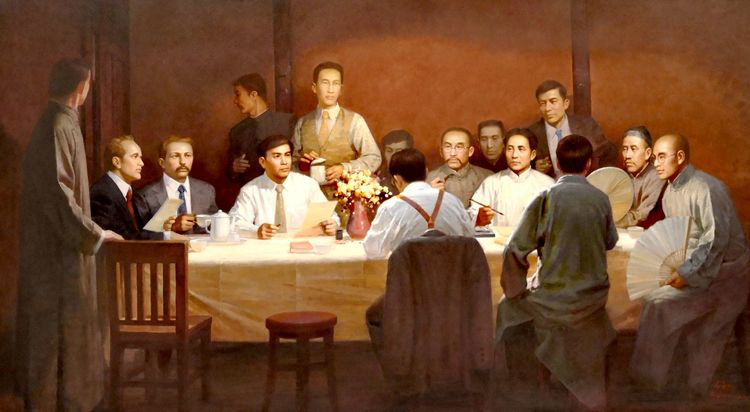 7月23日晚,中國共產(chǎn)黨第一次全國代表大會在上海法租界望志路106號(今興業(yè)路76號)正式開幕。會址設(shè)在李書城、李漢俊兄弟住宅,大家圍坐在客廳長餐桌四周,室內(nèi)沒有特別布置,陳設(shè)簡單,氣氛莊重。出席者有上海的李漢俊、李達(dá);北京的張國燾、劉仁靜;長沙的毛澤東、何叔衡;武漢的董必武、陳潭秋;濟(jì)南的王盡美、鄧恩銘;廣州的陳公博;留日學(xué)生周佛海以及陳獨(dú)秀委派的包惠僧。陳獨(dú)秀和李大釗因公務(wù)在身未出席會議,而在代表們心目中他們?nèi)允屈h的主要創(chuàng)始人和領(lǐng)袖。