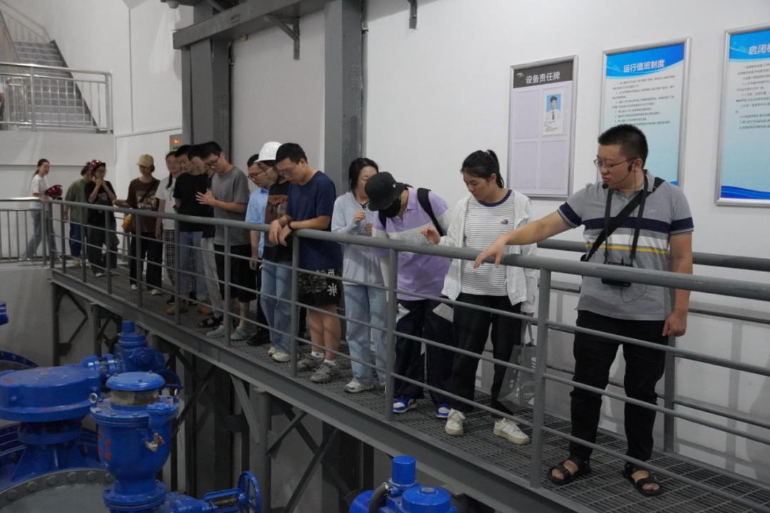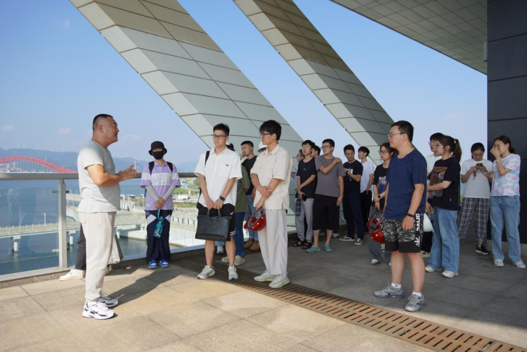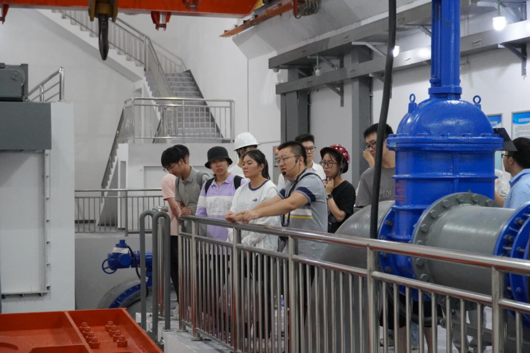最后,研學隊伍來到北堤樞紐參觀。該工程榮獲中國建筑行業(yè)工程質(zhì)量的最高榮譽獎——2020-2021年度第一批中國建設(shè)工程魯班獎。胡經(jīng)理帶領(lǐng)研學隊伍依次進入啟閉機房、觀景臺、控制室等處,現(xiàn)場講解工程設(shè)計思路、建造工藝和管理要點。