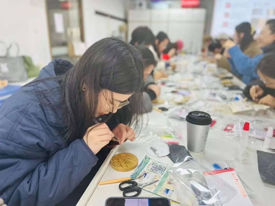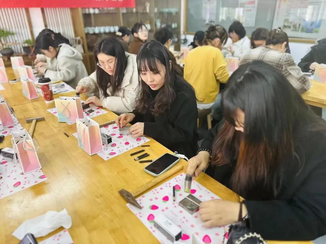 活動當(dāng)天,女職工們按時到達(dá)活動教室,發(fā)揮巧思,施展妙手,或是“掐絲、剪絲、上砂、上膠”,或是“測量、造型、印刻、拋光”,或是“和面、打發(fā)、烘烤、裝點”,解鎖了一系列全新的體驗,收獲了節(jié)日的快樂和美好。