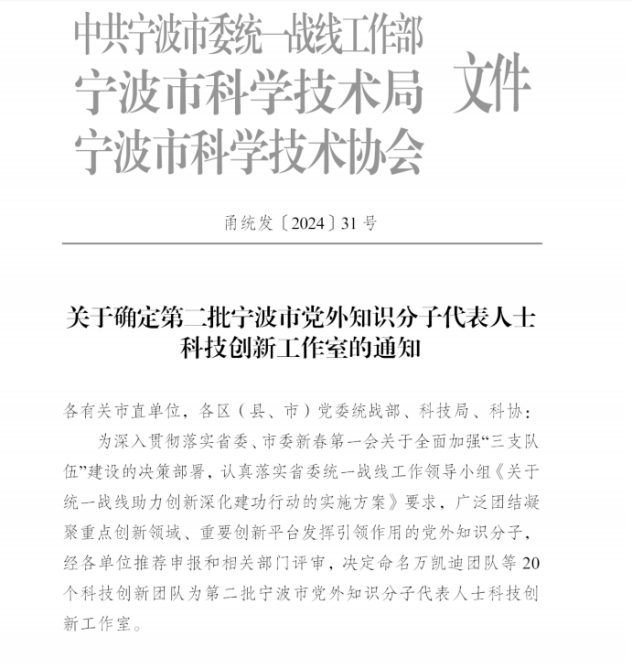 近日,寧波市統(tǒng)一戰(zhàn)線助力創(chuàng)新深化建功行動啟動儀式在寧波院士中心舉行。啟動儀式上,市委常委、統(tǒng)戰(zhàn)部部長林雅蓮為第二批寧波市黨外知識分子科技創(chuàng)新工作室團隊授牌。寧波市黨外知識分子科技創(chuàng)新工作室由市委統(tǒng)戰(zhàn)部會同市科技局、寧波市科協(xié)認(rèn)定。我院張預(yù)定創(chuàng)新工作室位列其中。