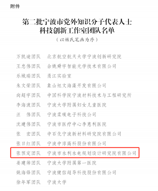 我院張預(yù)定創(chuàng)新工作室榮膺 “寧波市黨外知識分子科技創(chuàng)新工作室”